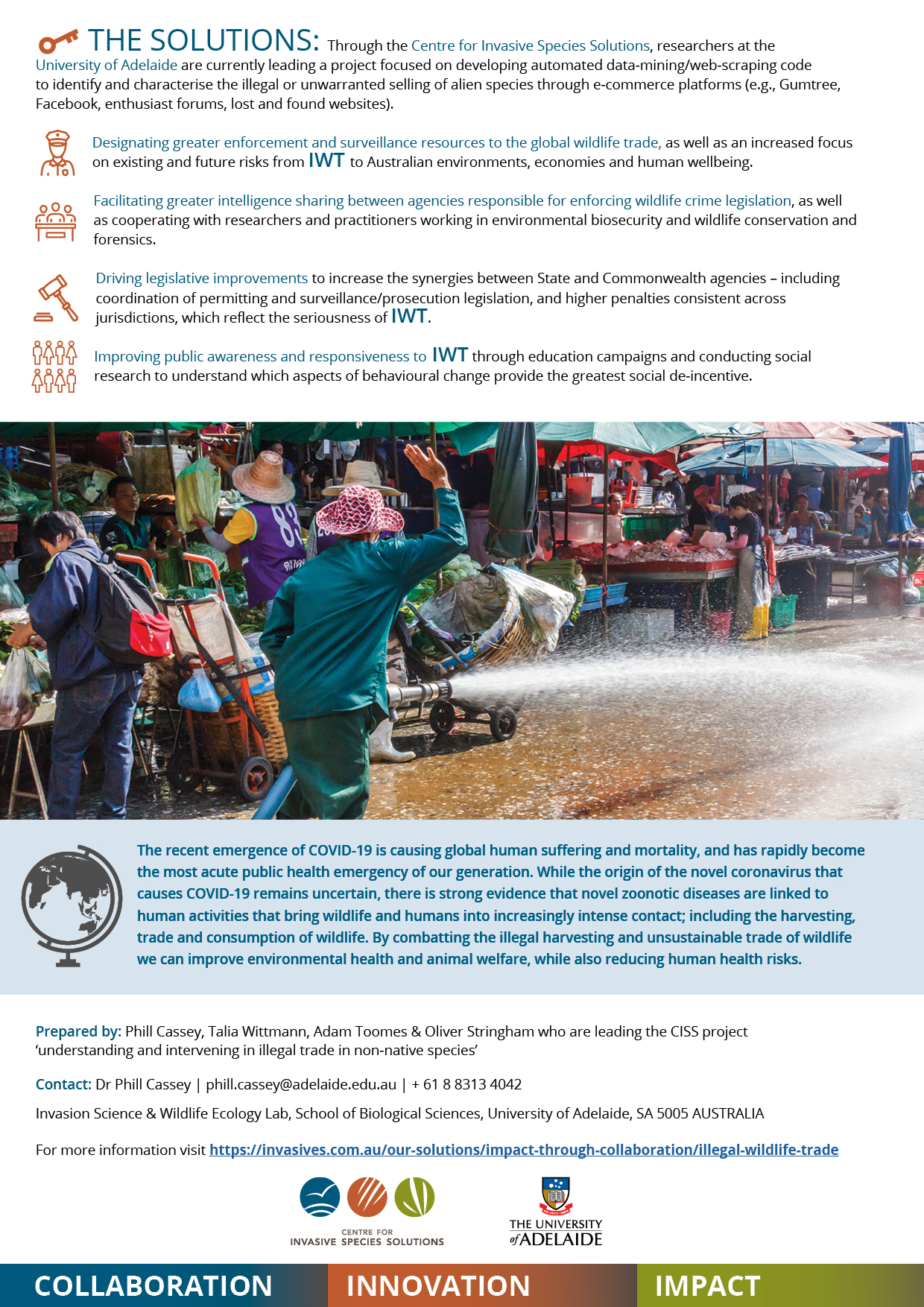 In all of our teaching and research we aim to present our results in exciting and innovative ways, for best practice in translation and adoption. In this regard, we collaborate with local and national government environment and biosecurity agencies, non-government conservation organisations, and international wildlife enforcement agencies.
